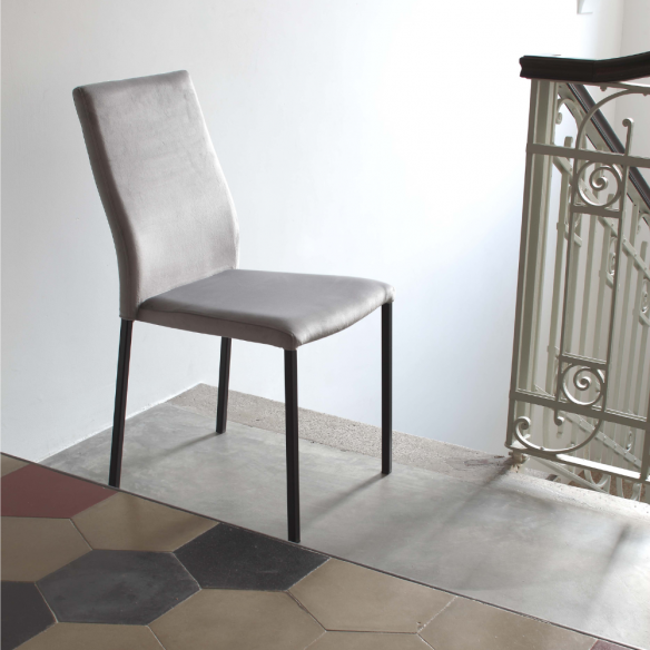 Sedia HELLEN PLUS di La Seggiola dalla seduta rivestita in velluto antimacchia nelle varianti blu notte, tortora, verde o ottanio. HELLEN PLUS dal design moderno ed accattivante, renderà unica la vostra casa.