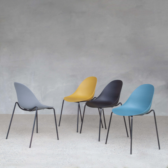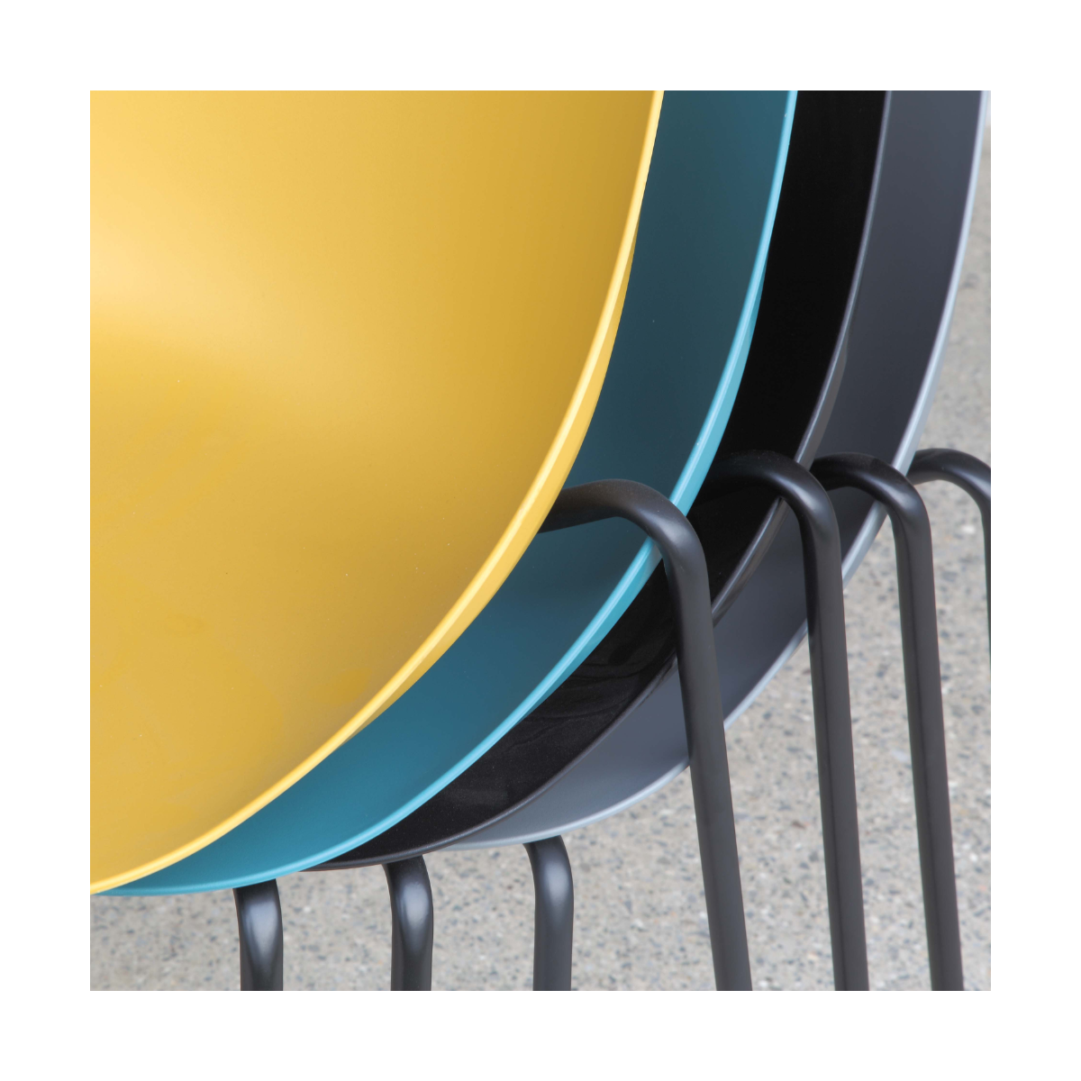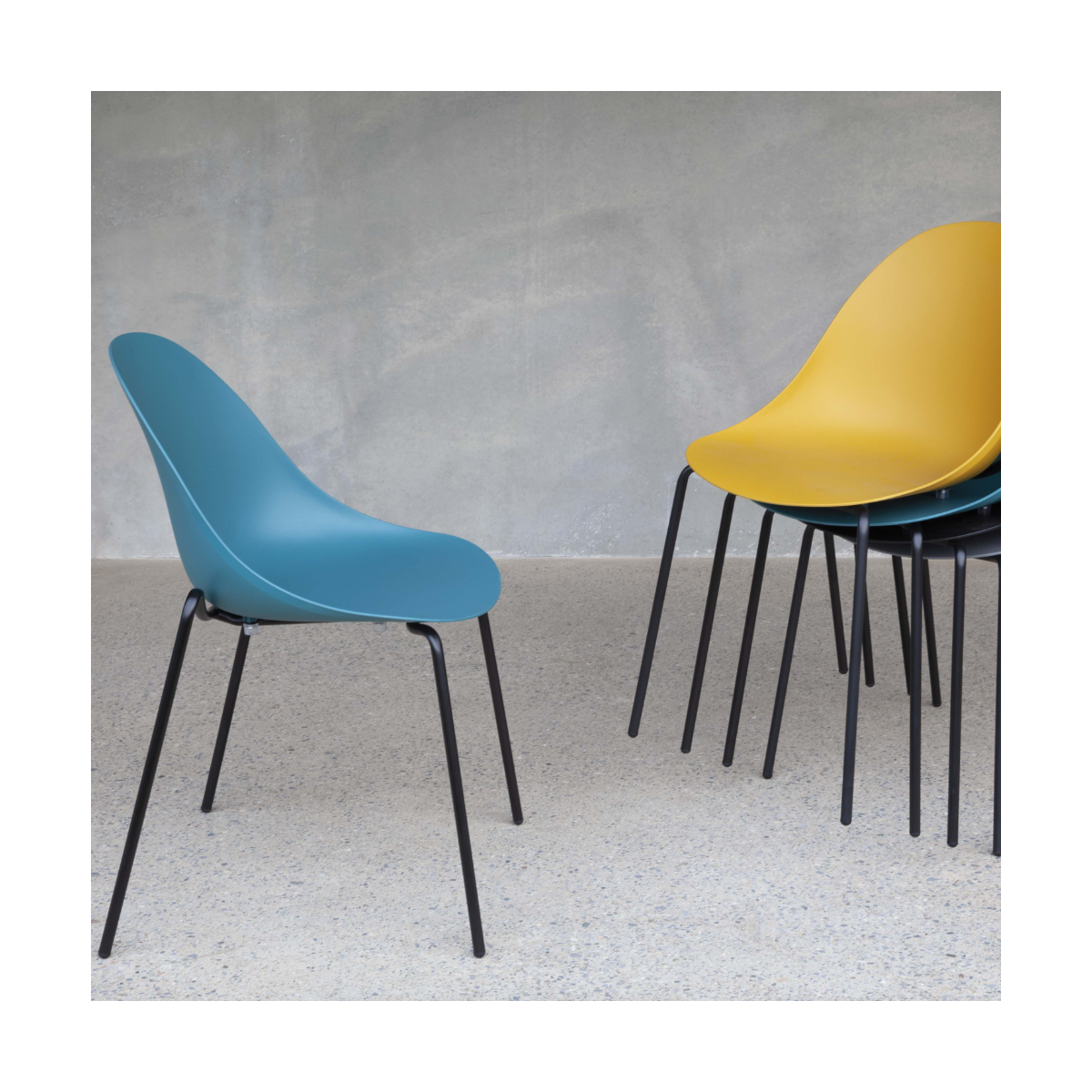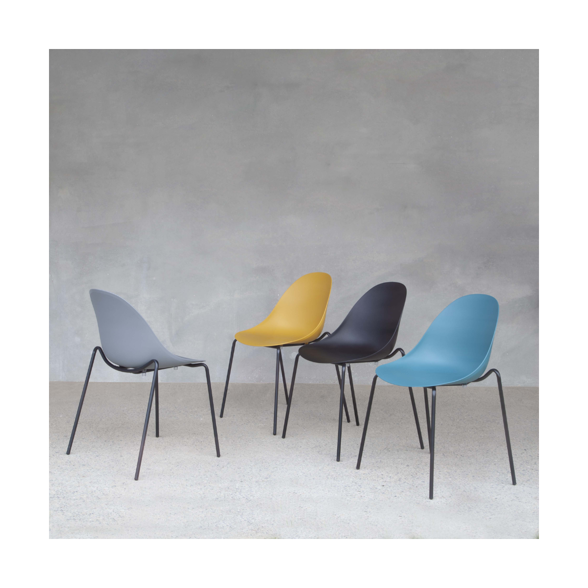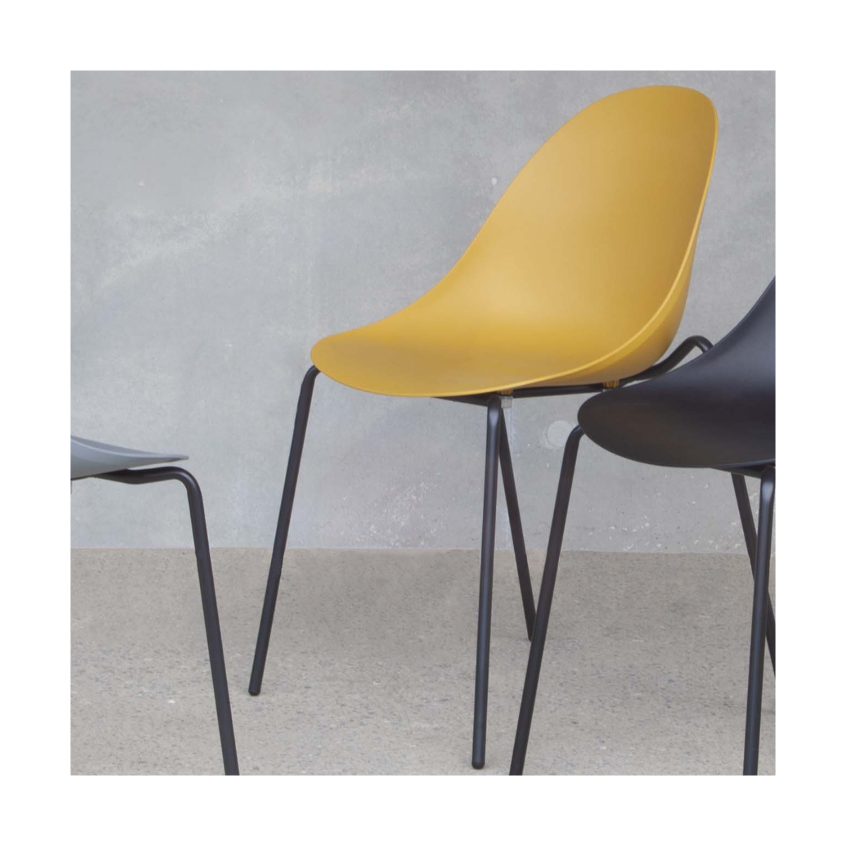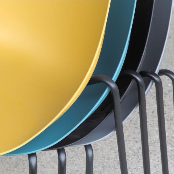 La sua struttura in metallo verniciato nero offre resistenza e durata nel tempo, garantendo una base solida su cui poter contare. La seduta in polipropilene, disponibile in una gamma di colori affascinanti tra cui nero, giallo senape, ottanio e grigio quarzo, aggiunge un tocco di vivacità e personalità a qualsiasi spazio.