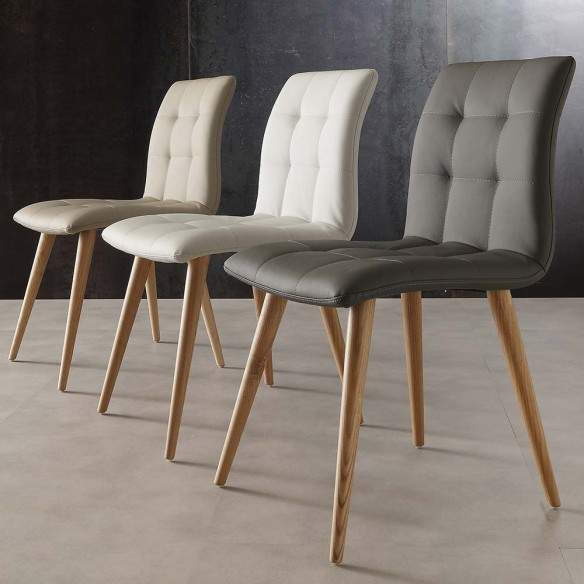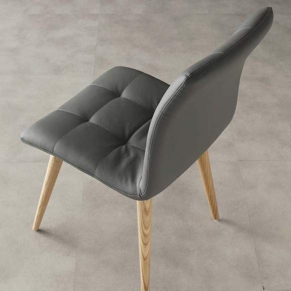 Sedia FINLAND dalla seduta in ecopelle e struttura in legno massello.
