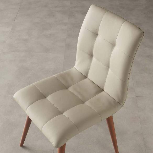 La sedia Finland di La Seggiola incarna l'eleganza senza tempo e la praticità moderna. Caratterizzata da una seduta rivestita in ecopelle disponibile in tre raffinate tonalità - bianca, sabbia e titanio - e da gambe in massello disponibili in varie finiture, questa sedia si adatta perfettamente a qualsiasi stile di arredamento.