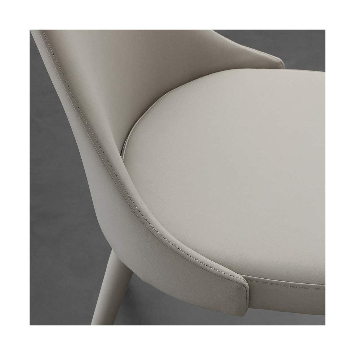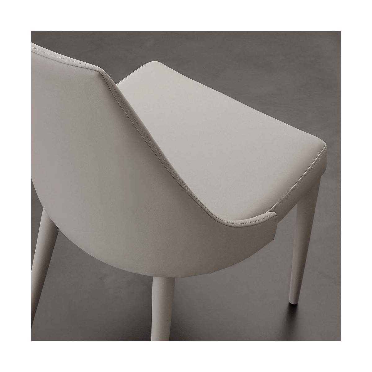 Questa sedia presenta una struttura in metallo rivestita in ecopelle, disponibile in una gamma di tonalità raffinate tra cui bianco, sabbia e titanio, che si adattano perfettamente a ogni stile di arredamento. Di pregevole realizzazione, la Sedia Sinfonia vanta linee essenziali ed eleganti, con una seduta incredibilmente rilassante e comoda.