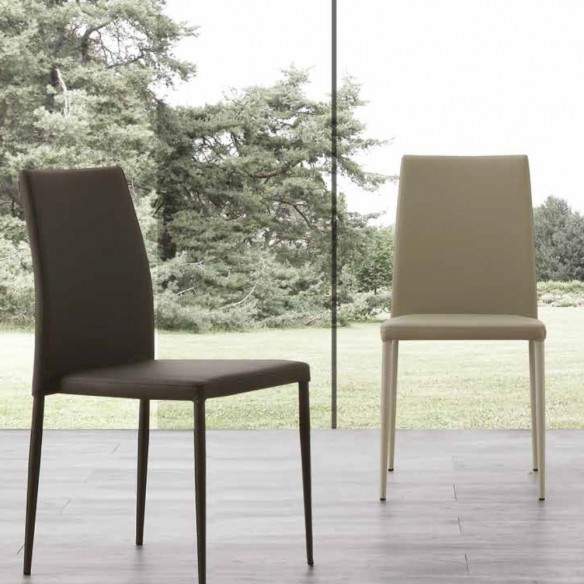 Disponibile in tre varianti di ecopelle - Tortora Chiaro, Tortora Fango e Titanio - questa sedia si integra perfettamente in una varietà di ambienti, dalla cucina al soggiorno, aggiungendo un tocco di calore e stile.