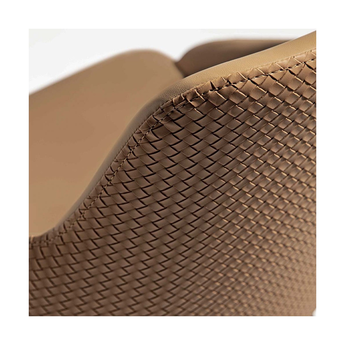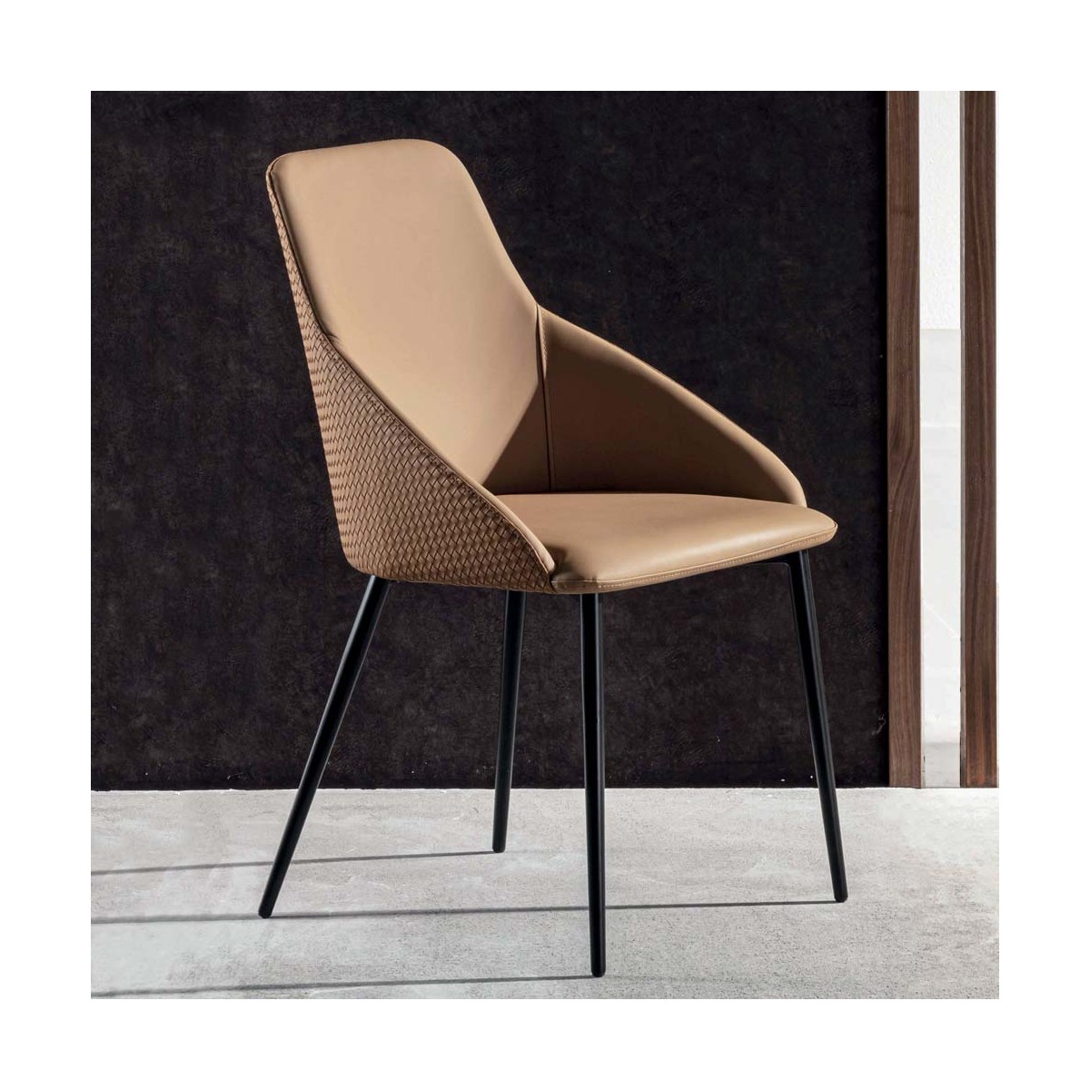 Caratterizzata da una base a 4 gambe verniciata nera e un rivestimento in ecopelle, offre un sedile liscio e uno schienale stampato a rilievo, conferendo un design accattivante ed esclusivo. Disponibile in diverse varianti di colore tra cui tortora chiaro, nocciola e grigio titanio, si adatta facilmente a diversi stili e gusti di arredamento.