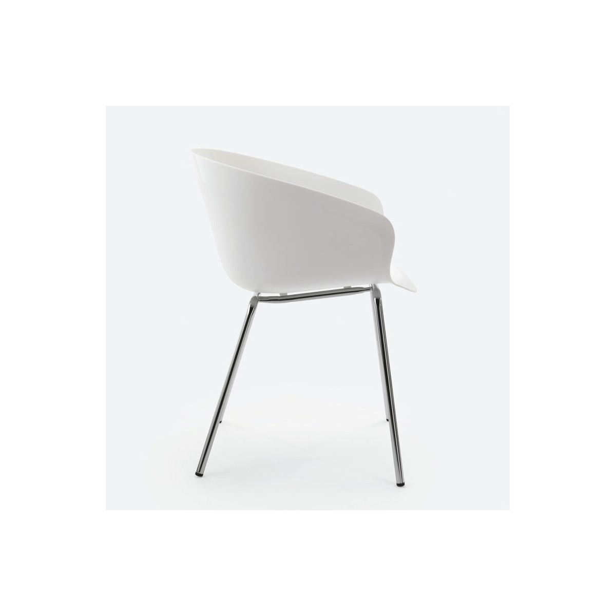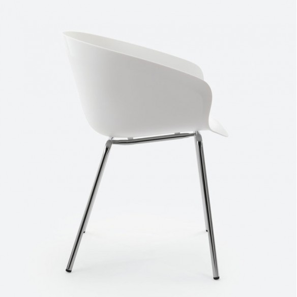 Poltroncina in plastica bianca con base 4 gambe in metallo cromato