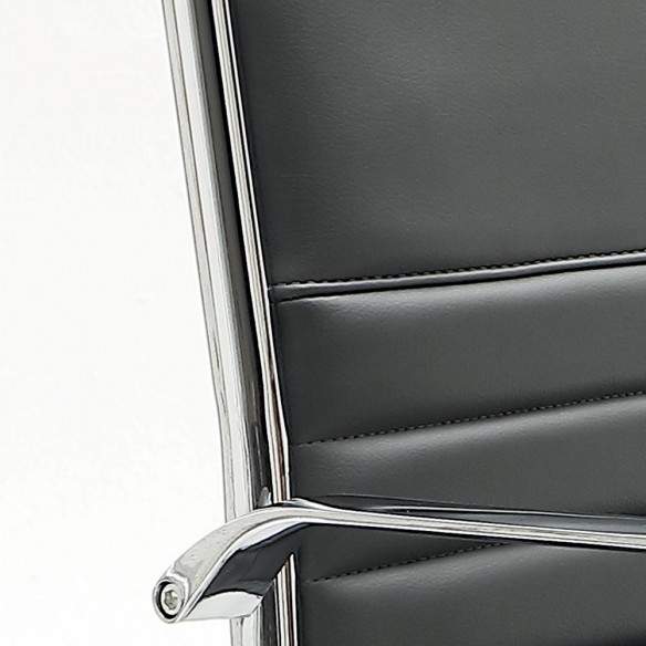 Eleganza e funzionalità si uniscono in questa poltrona con sedile girevole dotata di alzo a gas. La struttura in metallo cromato garantisce robustezza e design contemporaneo, mentre il meccanismo basculante offre un comfort ottimale per un utilizzo quotidiano.