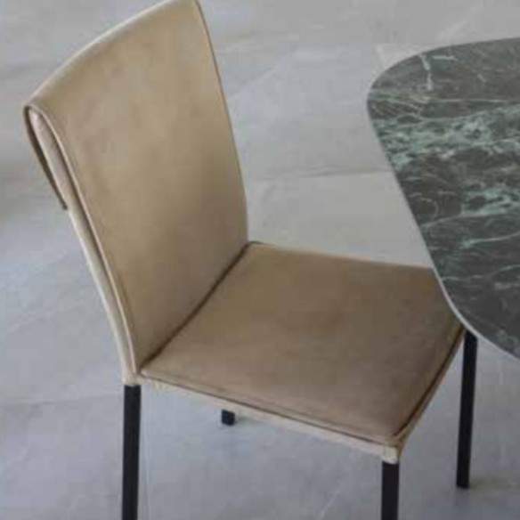 La sedia di La Seggiola è un'elegante fusione di design contemporaneo e comfort, ideale per impreziosire con stile qualsiasi ambiente, dalla zona pranzo a uno spazio contract raffinato. La sua struttura, solida e resistente, è realizzata in metallo verniciato nero, una finitura che esalta il suo carattere moderno e si abbina con estrema versatilità a diversi stili d’arredo. Per un tocco di coerenza estetica e maggiore raffinatezza, la struttura è rivestita in ecopelle in tinta, creando un effetto visivamente armonioso e curato nei minimi dettagli.