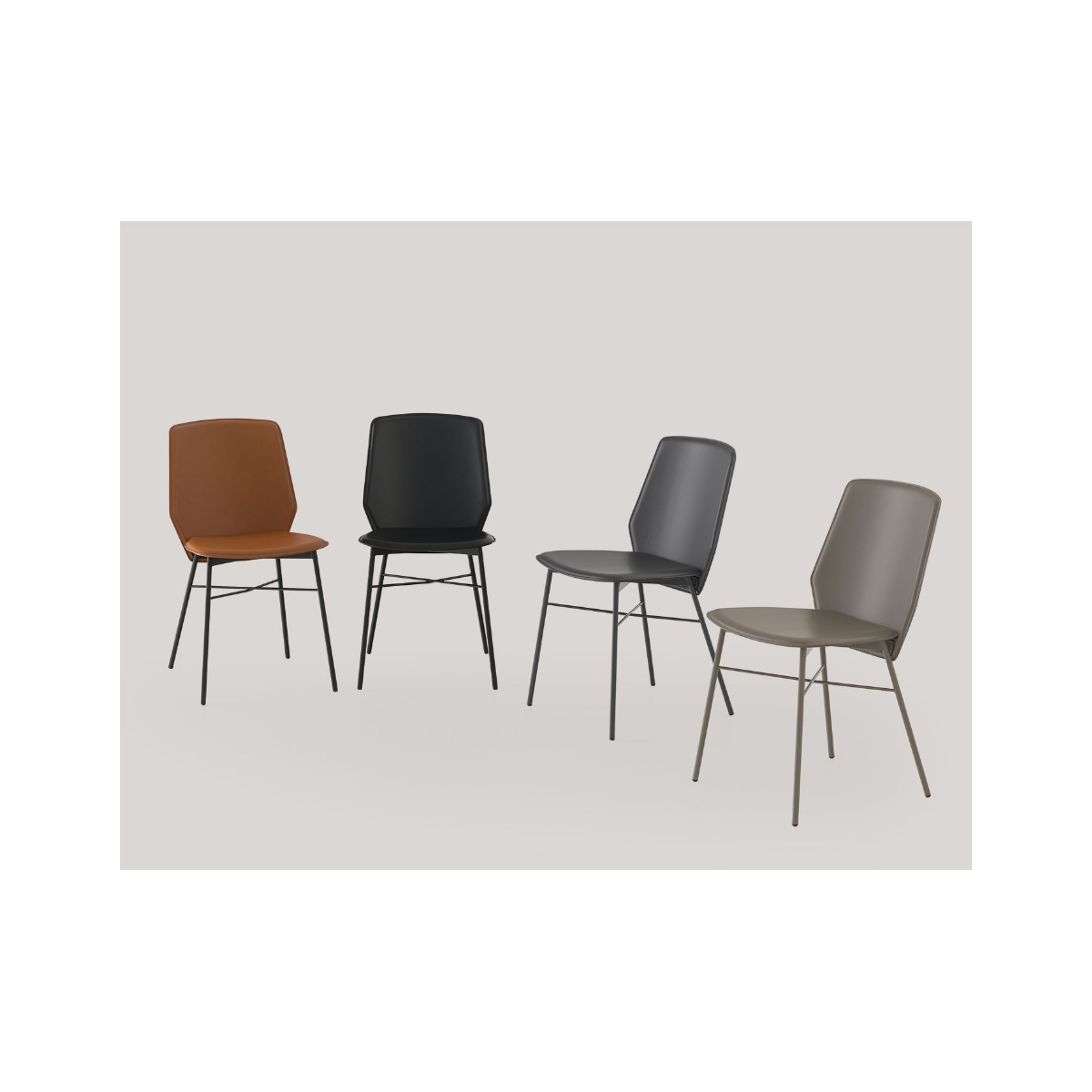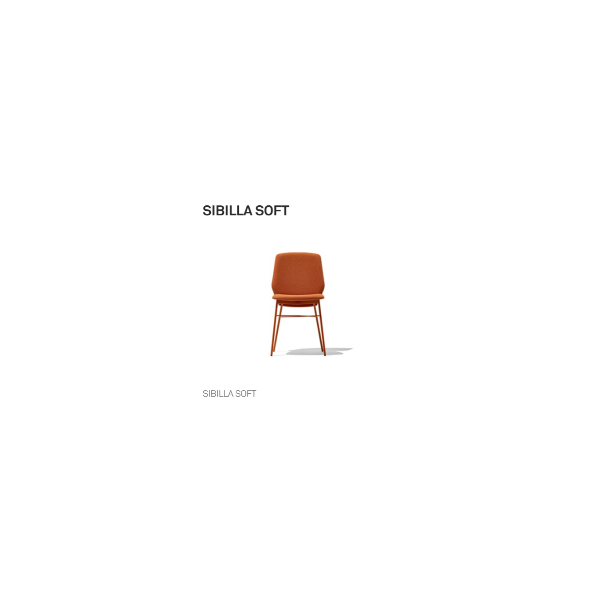 Sedia SIBILLA, con fusto in metallo, in versione imbottita e rivestita in tessuto non sfoderabile.