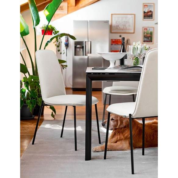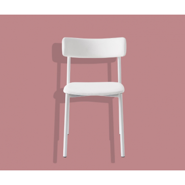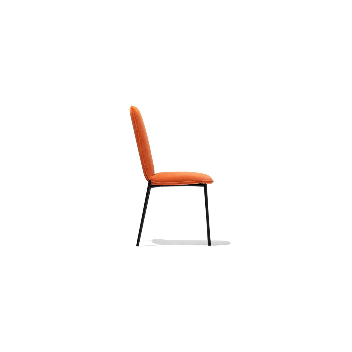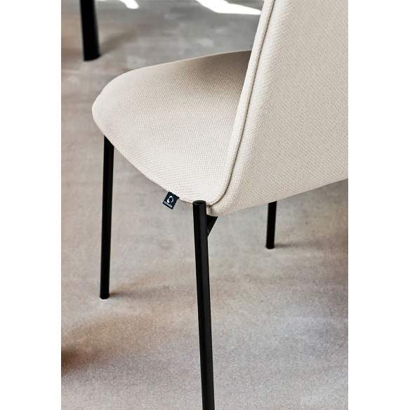 Gambe in metallo verniciato, seduta e schienale in Tessuto o Similpelle.