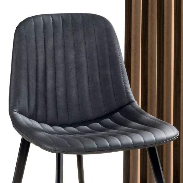 La struttura in metallo nero garantisce solidità e resistenza, donando al design un tocco deciso e sofisticato, ideale per chi ama gli arredi dal fascino industriale. La seduta, rivestita in pregiata ecopelle, offre un comfort ottimale e una texture morbida al tatto, valorizzando l’esperienza di seduta con un dettaglio di classe. Il contrasto tra il metallo scuro e la finitura elegante della seduta crea un equilibrio perfetto tra modernità e comfort, rendendolo adatto a una vasta gamma di ambienti, dai loft urbani alle cucine dallo stile contemporaneo.