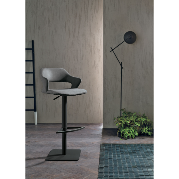 Sgabello SEATTLE regolabile in altezza con struttura in metallo verniciato e seduta rivestita in morbida microfibra effetto velluto.
