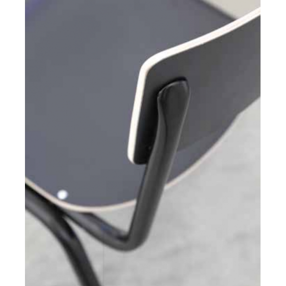 Caratteristiche principali: Struttura in metallo verniciato nero (tubo Ø 25 mm): La base in metallo conferisce solidità e una finitura moderna, mentre la verniciatura nera aggiunge un tocco elegante e versatile, perfetto per ambienti di ogni tipo. Seduta in laminato nero placcato su multistrati: La seduta è realizzata con un materiale resistente e durevole, che mantiene un aspetto sofisticato, garantendo comfort e praticità.
