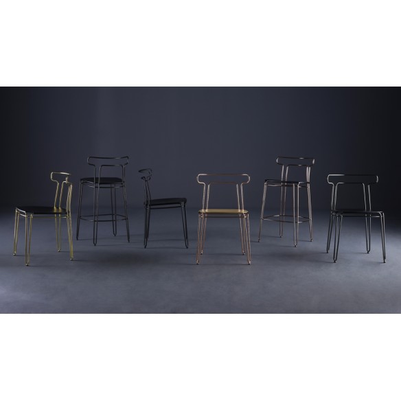 Sgabello con struttura in tondino di acciaio disponibile nelle seguenti finiture: