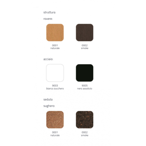 Sgabello con struttura in rovere naturale o rovere smoke.