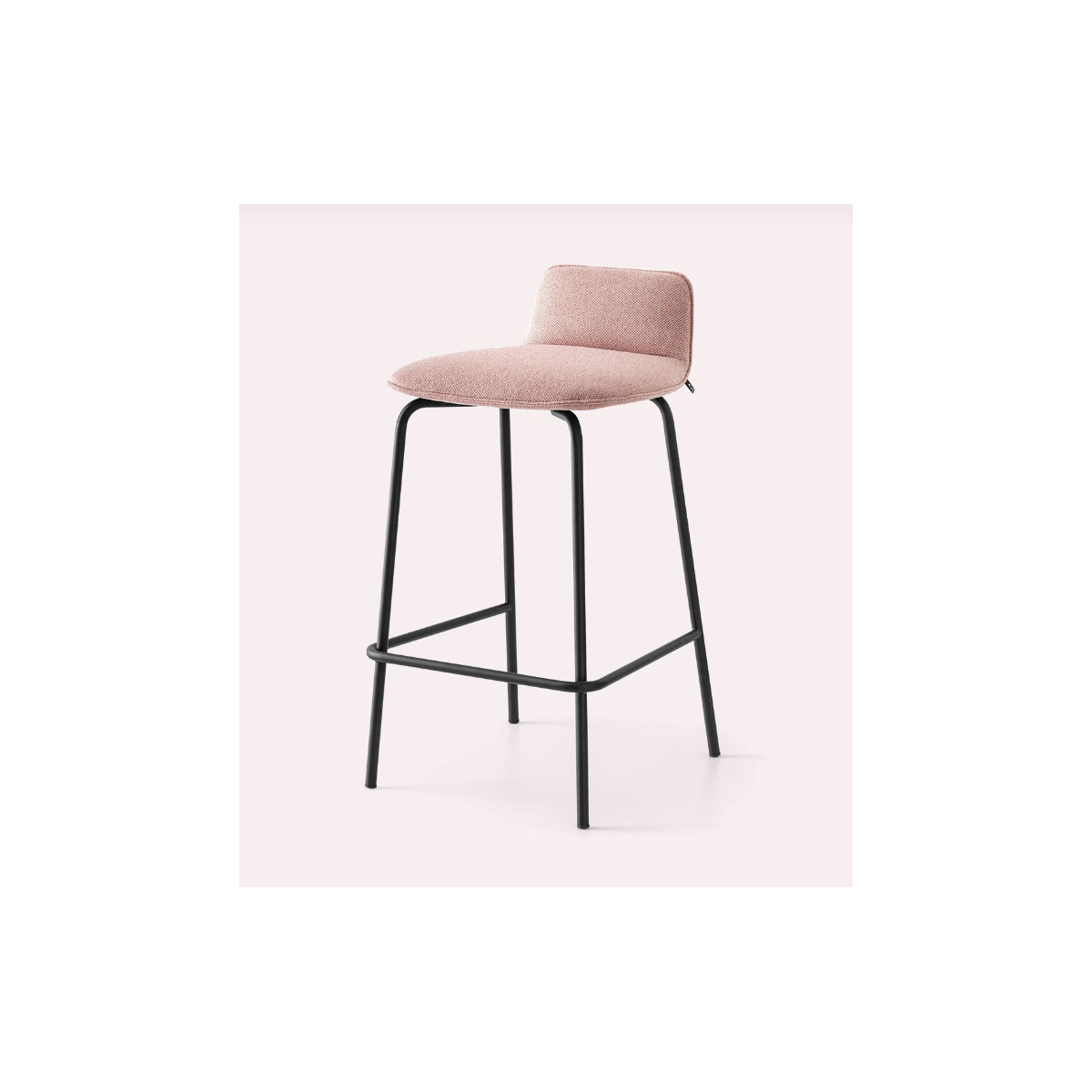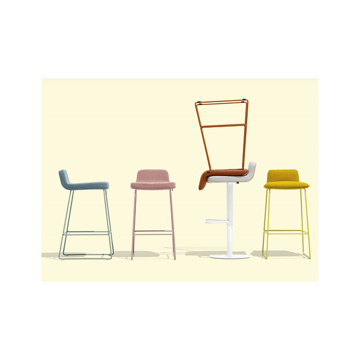 Sgabello RILEY SOFT con base in tondino di metallo.