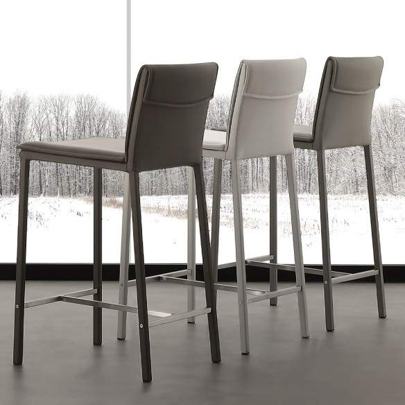Sgabello Vogue con Struttura in Metallo e Seduta in Ecopelle