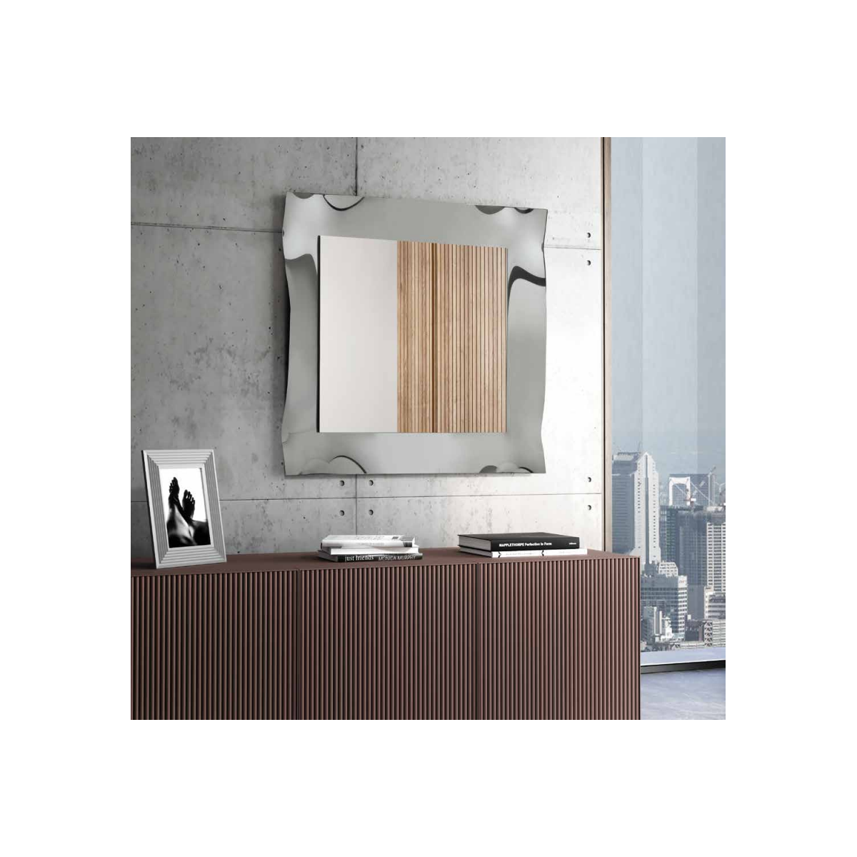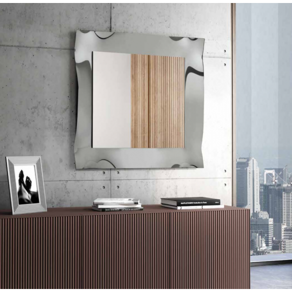 Disponibile in due misure per adattarsi a ogni esigenza di spazio, 95 x 95 cm e 170 x 70 cm, questa specchiera può essere appesa sia in orizzontale che in verticale, offrendo grande versatilità e permettendo di integrarla facilmente in ambienti moderni, classici o contemporanei. La lavorazione del vetro termocotto dona un effetto tridimensionale alla cornice, rendendola un vero elemento decorativo oltre che funzionale.