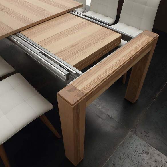 Il piano in Listellare Impiallacciato Frassino Olivato offre un'eleganza naturale e una durata eccezionale, mentre le gambe in Massello Frassino Olivato aggiungono un tocco di calore e solidità. L'innovativo meccanismo struttura telescopica di alta qualità consente un'apertura agevole del tavolo, evitando fastidiosi ostacoli al centro.