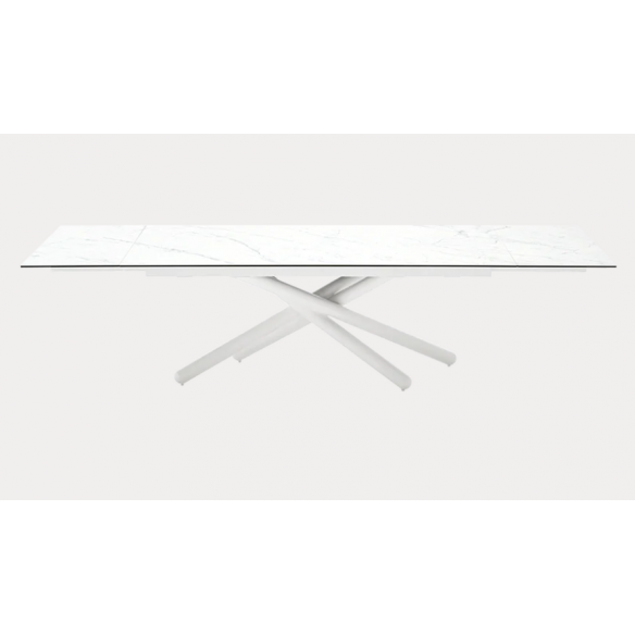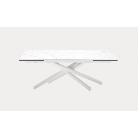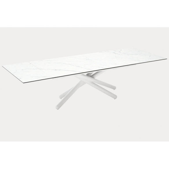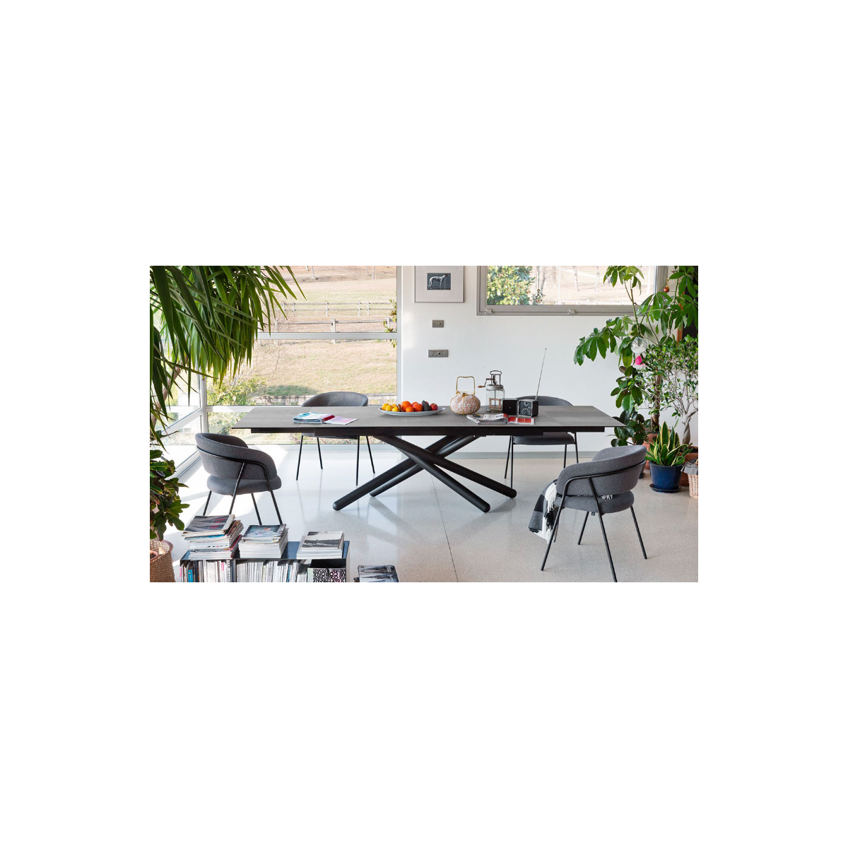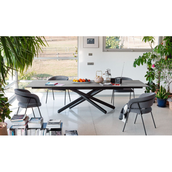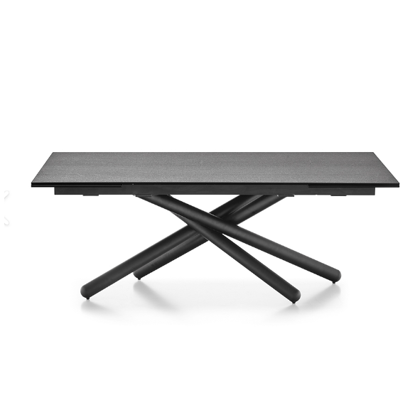 Uno per tutti e tutti per uno: le quattro gambe del tavolo Duel, come punte di fioretto fuori scala, si incrociano e si incastrano in un perfetto gioco architettonico fatto di tubi a sezione circolare raccordati alle estremità. I piani di appoggio, sia fissi che allungabili e disponibili in diverse dimensioni e finiture, sono sorretti dal basamento in metallo verniciato a polvere e adatto sia per un uso indoor che outdoor. Il design scultoreo è giocato sui contrasti tra il dinamismo del basamento e la stabilità delle linee orizzontali, tra la presenza decisa delle singole gambe e l’essenzialità del piano d’appoggio. Duel è il tavolo perfetto per fare spazio ad amici e famigliari e sorprendere con un stile sempre originali.