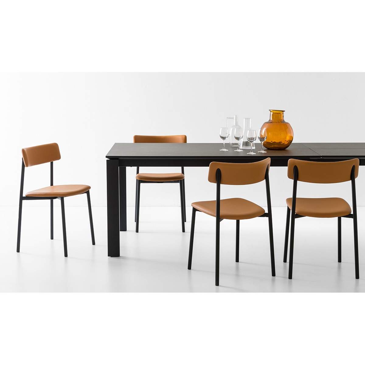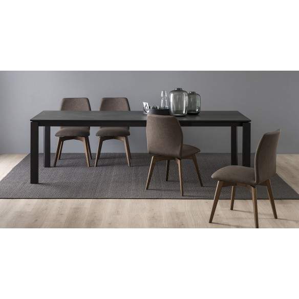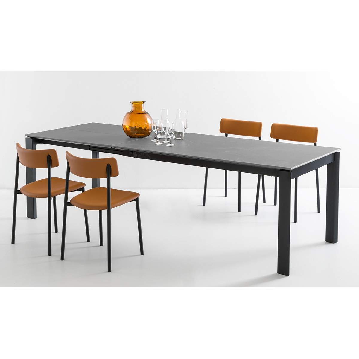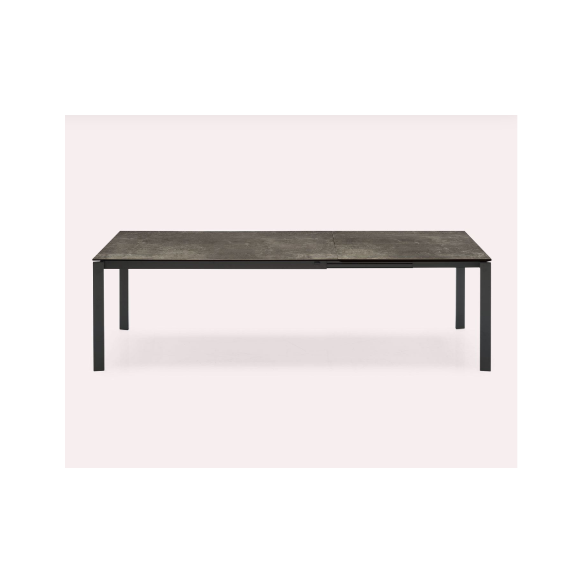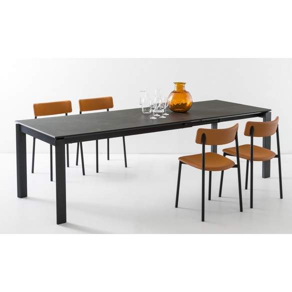 EMINENCE FAST è un tavolo con piano in ceramica. Presenta un'allunga laterale a libro nella stessa finitura del piano, mentre le gambe sono sempre perimetrali per garantire comfort a tutti i commensali. La sua funzionalità e la sua eleganza lo rendono un elemento d'arredo unico per la zona dining.
