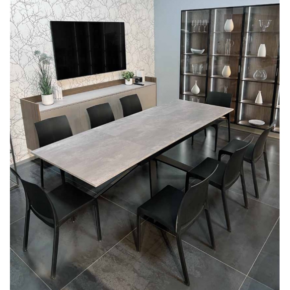 Tavolo allungabile KRONOS con struttura in metallo nero verniciato e piano in nobilitato.