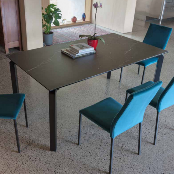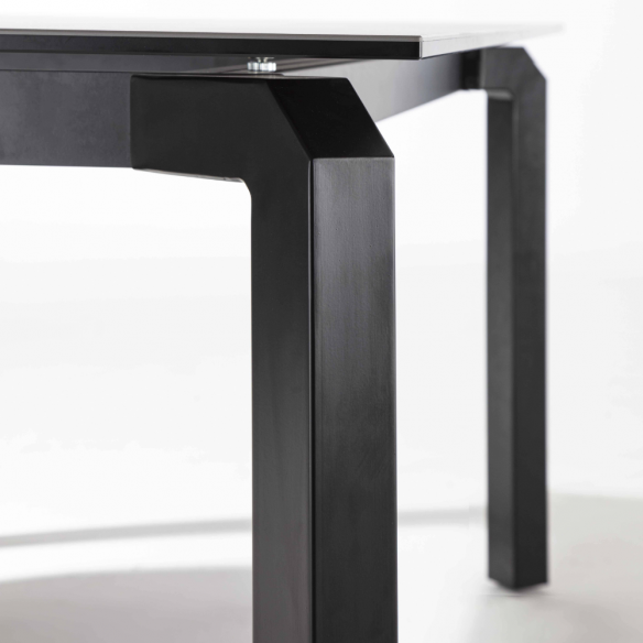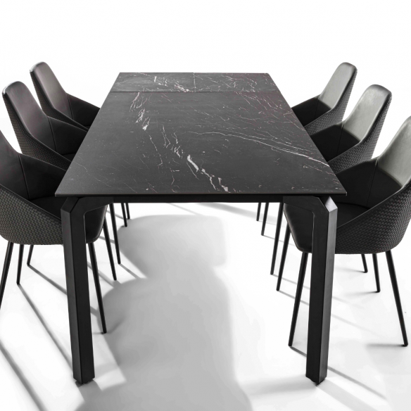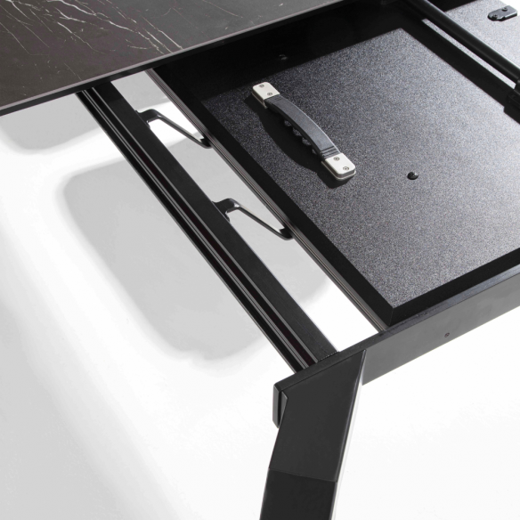 Tavolo allungabile ATLANTE con struttura in metallo verniciato nero e piano in ceramica.
