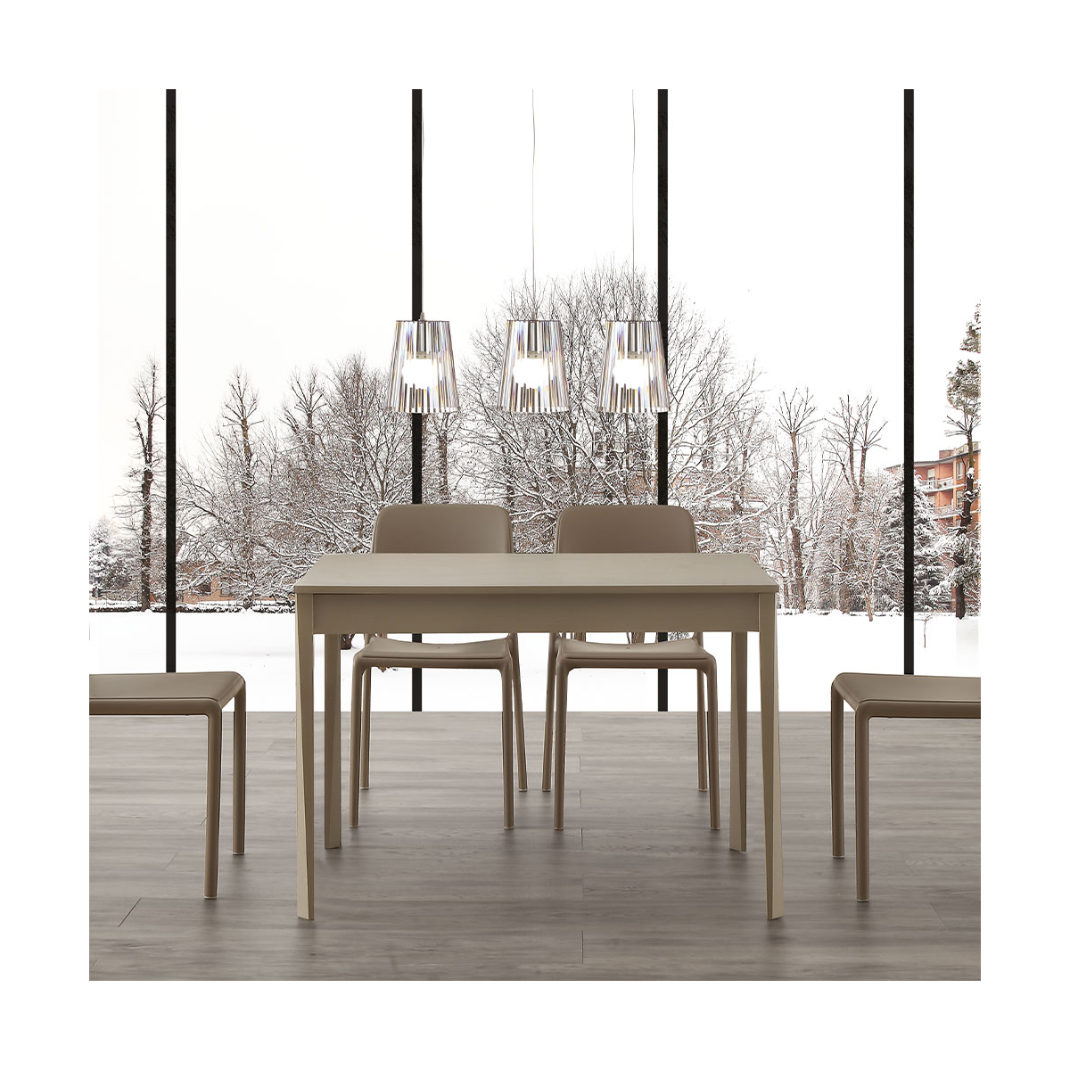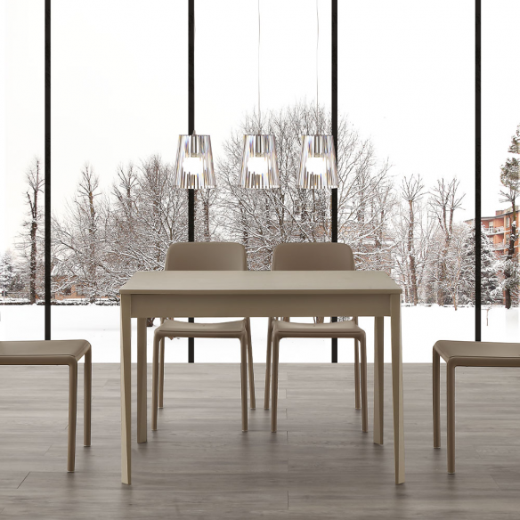 Tavolo allungabile GEORGE con gambe in massello laccate e piano in nobilitato.
