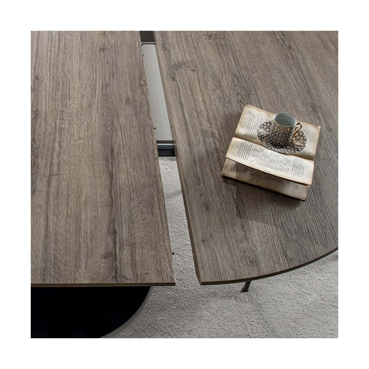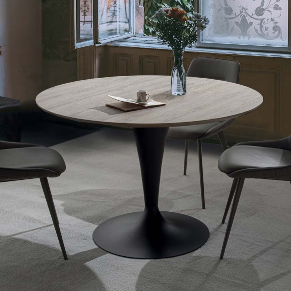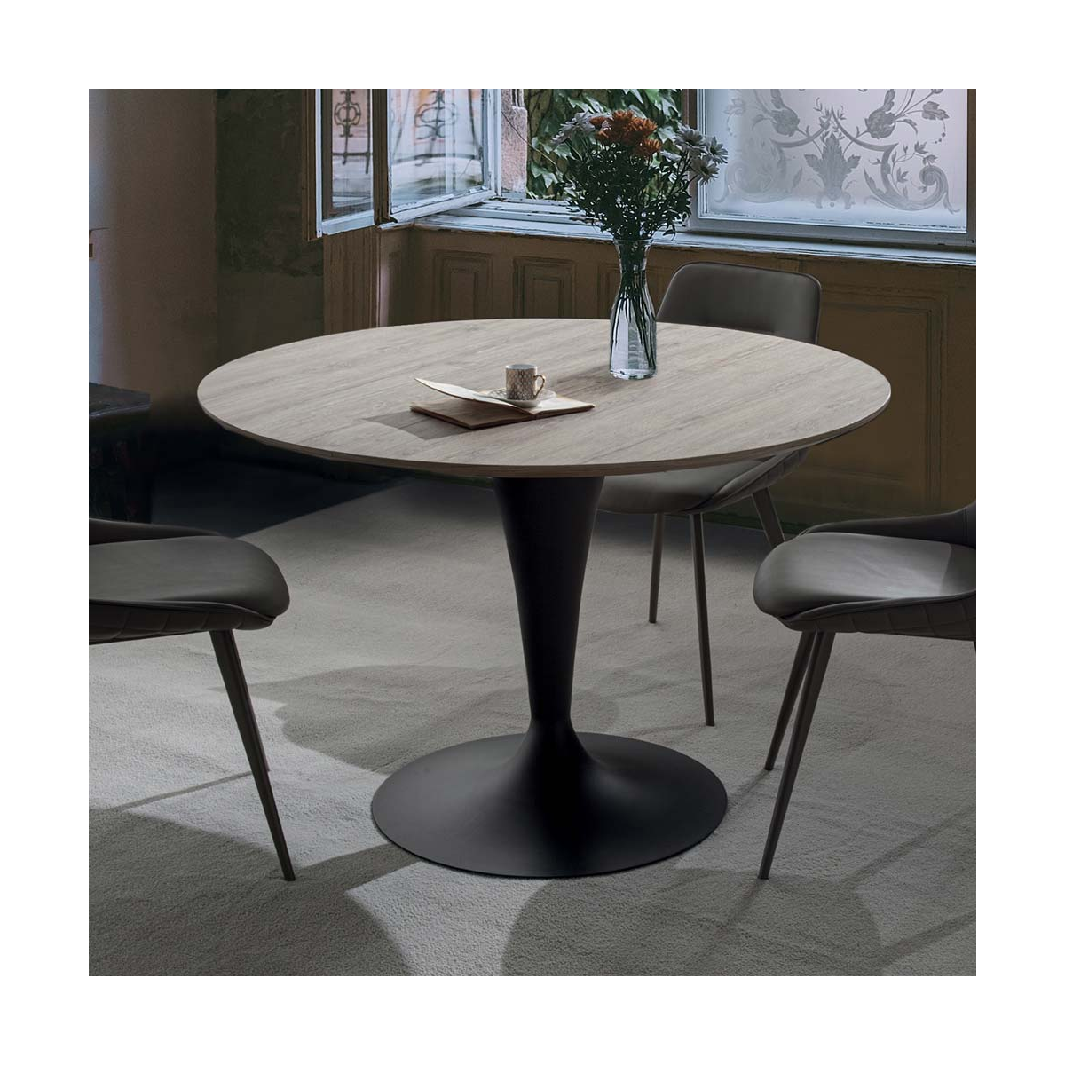 Con un diametro di 120 cm, che si estende fino a 170 cm nella versione allungabile, questo tavolo offre ampio spazio per accogliere i tuoi ospiti in occasioni speciali, senza rinunciare alla sua eleganza e alla sua presenza scenica.