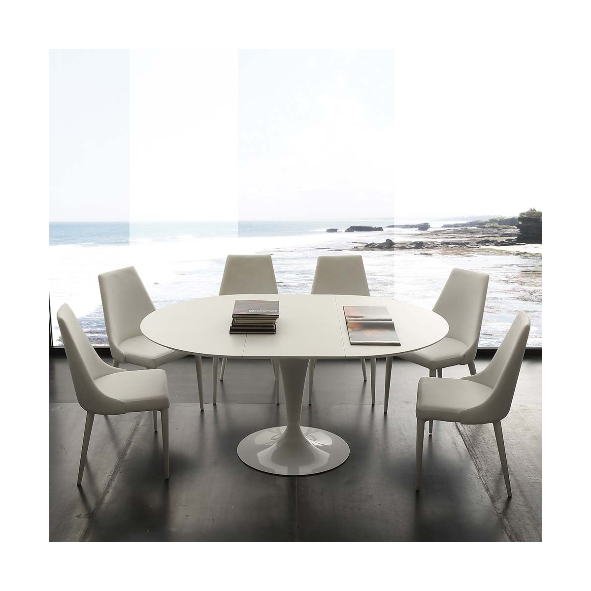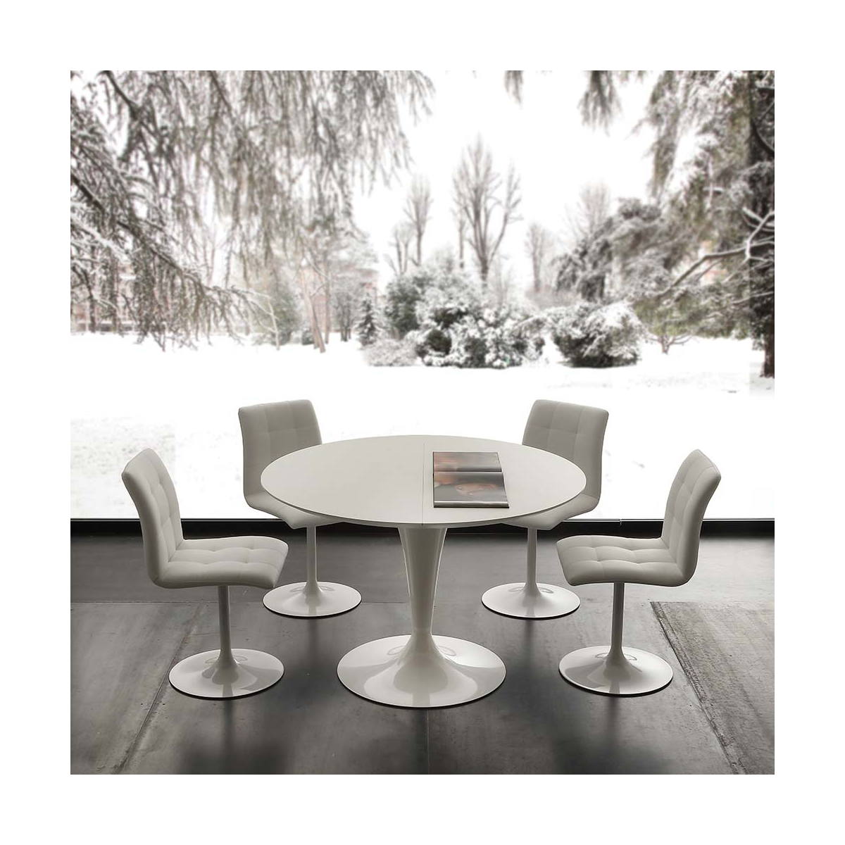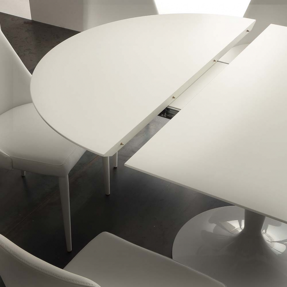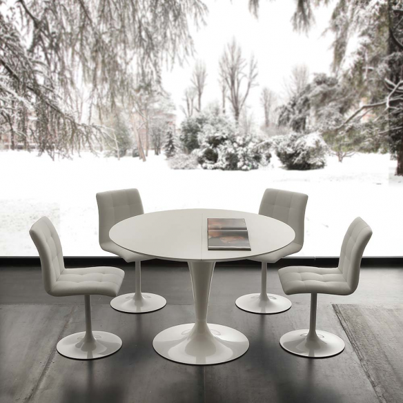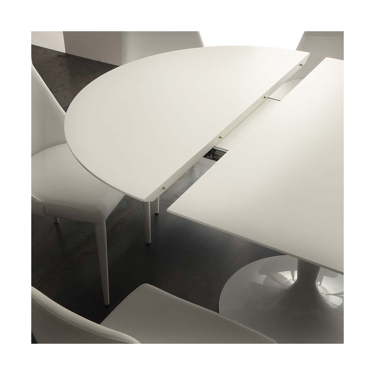 - Allungabile (max 8 persone): - chiuso: Altezza: 77 cm/Diametro: Ø 120 cm/Diametro base: Ø 65 cm - aperto: Altezza 77 cm/Larghezza: 170 cm/Profondità: 120 cm/Diametro base: Ø 65 cm