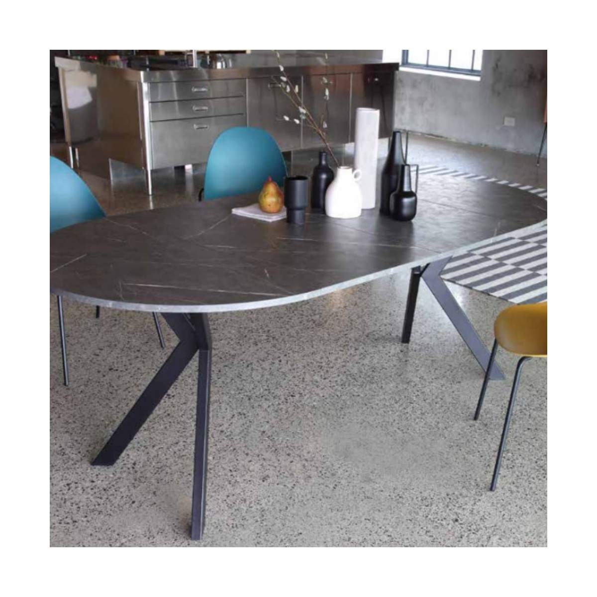 La base in acciaio verniciata nera offre una solida e sofisticata fondazione per questo tavolo, mentre il piano nobilitato da 19 mm, disponibile in quattro affascinanti finiture - rovere nodato, cemento, antracite e pietra grey - conferisce un tocco di raffinatezza e durata.