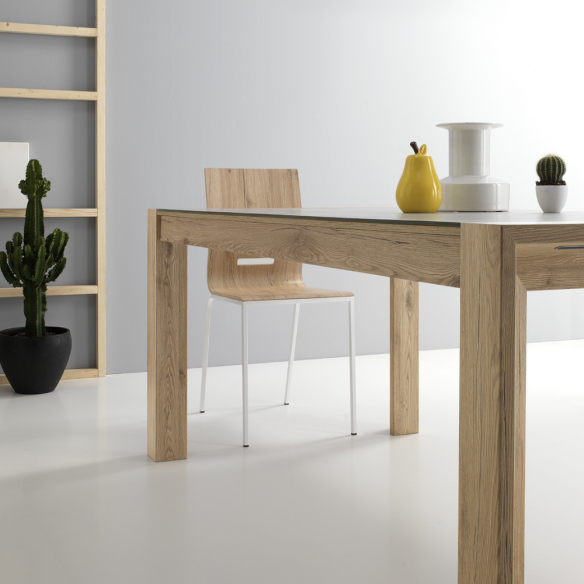 Le gambe in MDF nobilitato melamminico sono pensate per agevolare l’apertura del tavolo, offrendo praticità senza compromettere l’estetica.