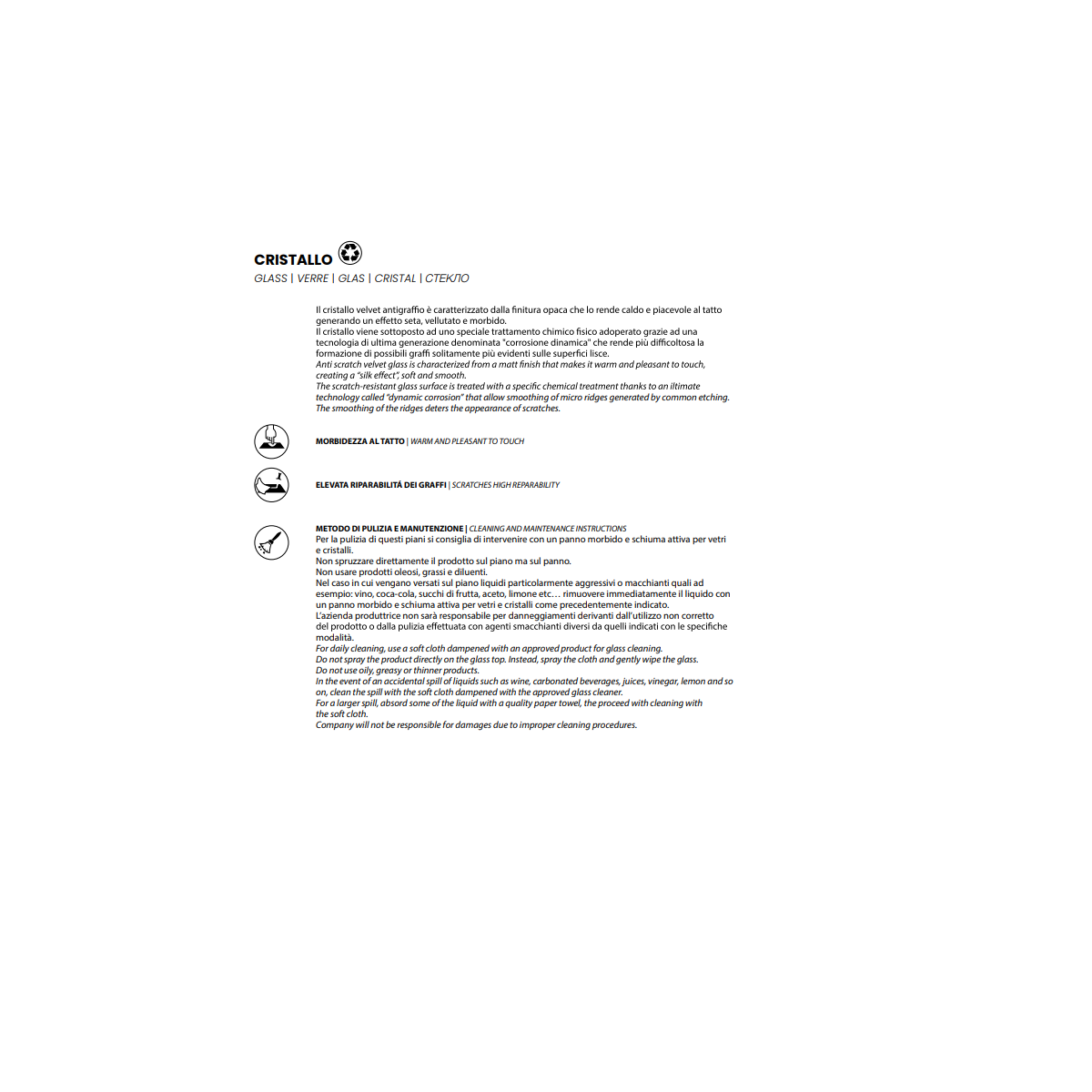 La struttura è in acciaio laccato proposto in molteplici colorazioni, mentre il piano abbinato lo si potrà scegliere tra diverse tipologie di materiale: melaminico e cristallo, anch'essi con diverse finiture.