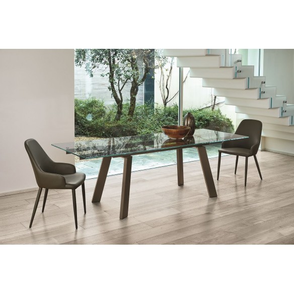 Tavolo mod. Gulliver - Ingenia è il tavolo allungabile con struttura in alluminio e acciaio laccato proposto in diverse splendide colorazioni, mentre il piano e le allunghe sono in cristallo, anch'esse proposte in tre diverse varianti di finitura.