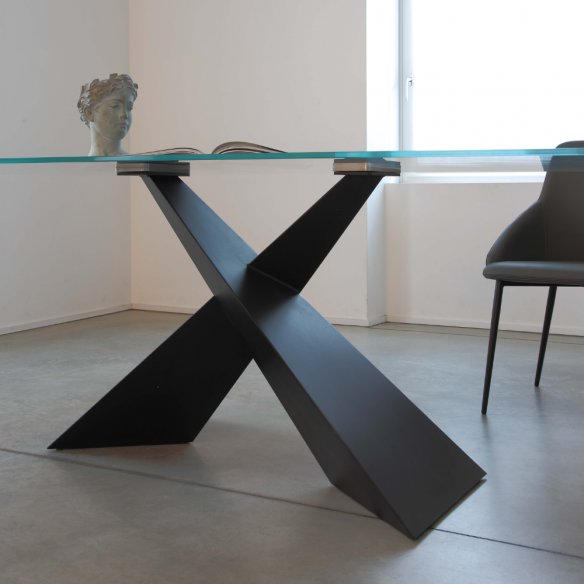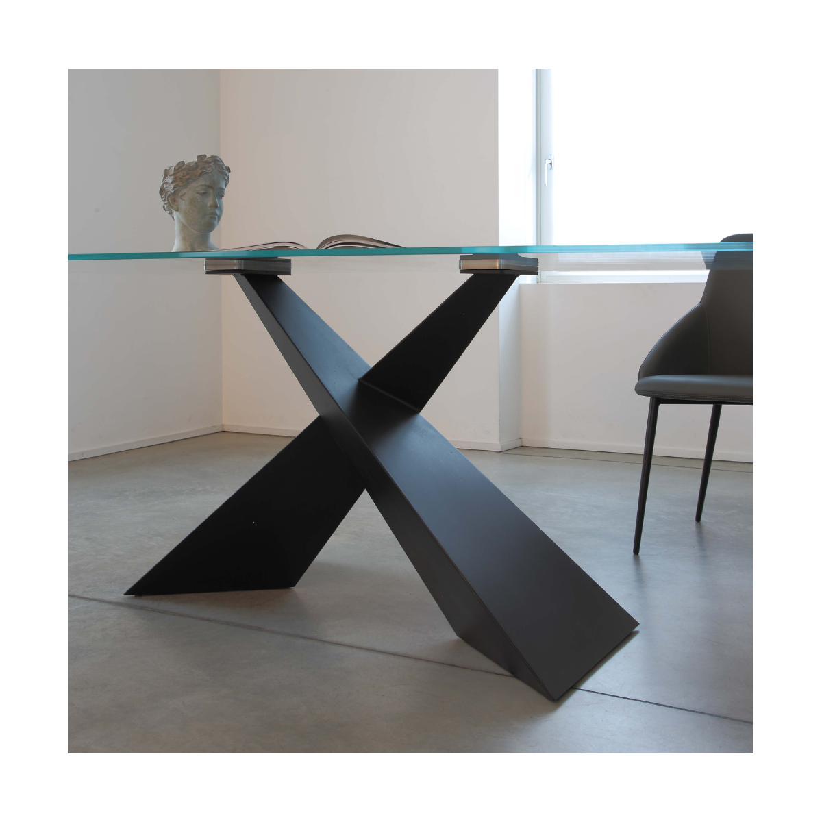 Tavolo fisso OSAKA con struttura in metallo verniciato e piano in cristallo.