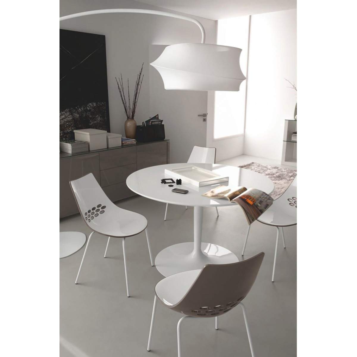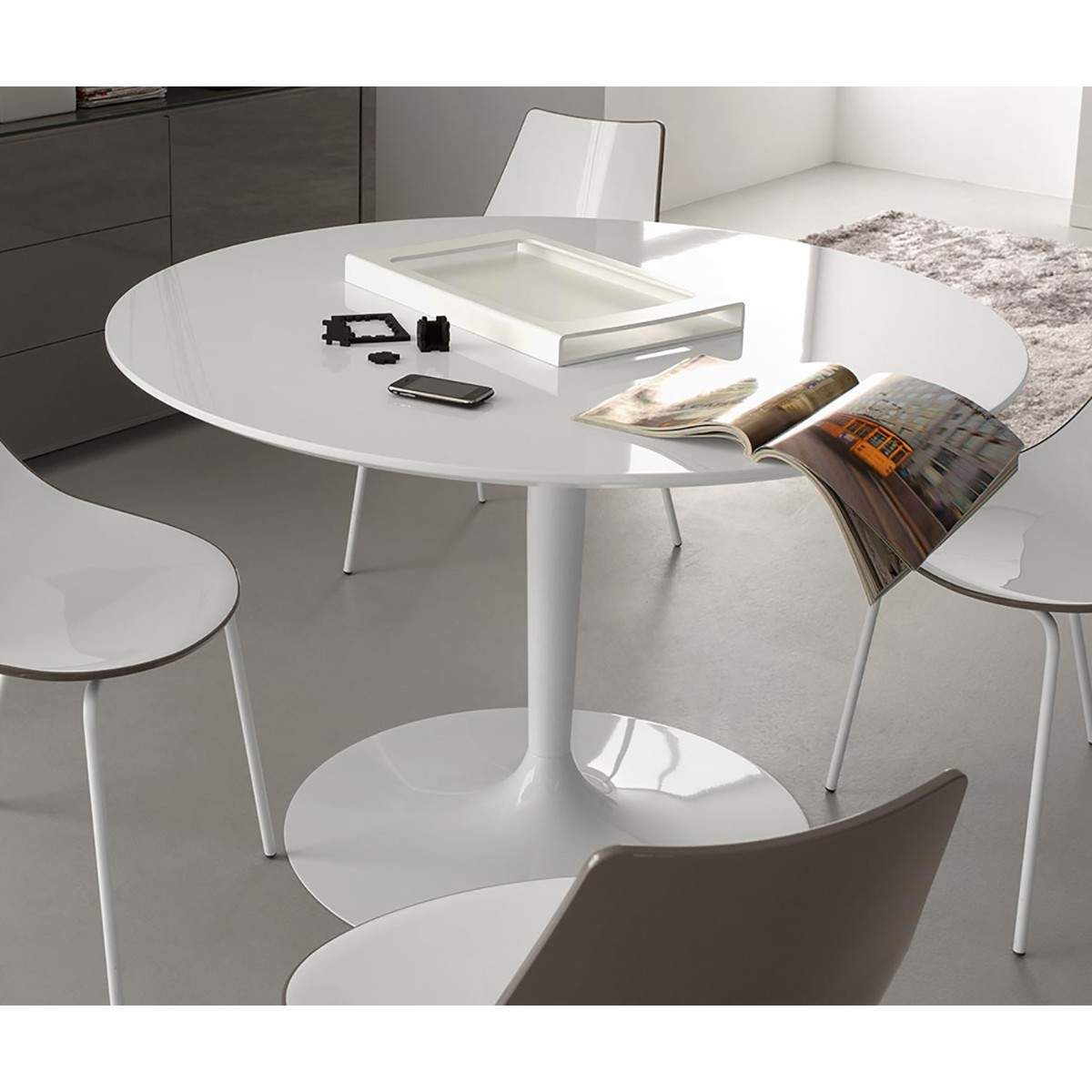 Il Tavolo Fisso PLANET di CONNUBIA è l'esempio perfetto di design moderno e funzionalità impeccabile. Con il suo basamento centrale a colonna in metallo, questo tavolo assicura la massima stabilità e solidità, mentre il piano rotondo aggiunge un tocco di eleganza e stile contemporaneo a qualsiasi ambiente.