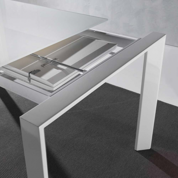 Il tavolo Sliver è dotato di una mono allunga a pacchetto, che consente di allungare il tavolo in modo semplice e veloce, offrendo spazio aggiuntivo quando necessario. Grazie al suo meccanismo telescopico a libro, l'apertura e la chiusura del tavolo sono estremamente comode e pratiche, rendendo il tavolo Sliver ideale per un uso quotidiano.