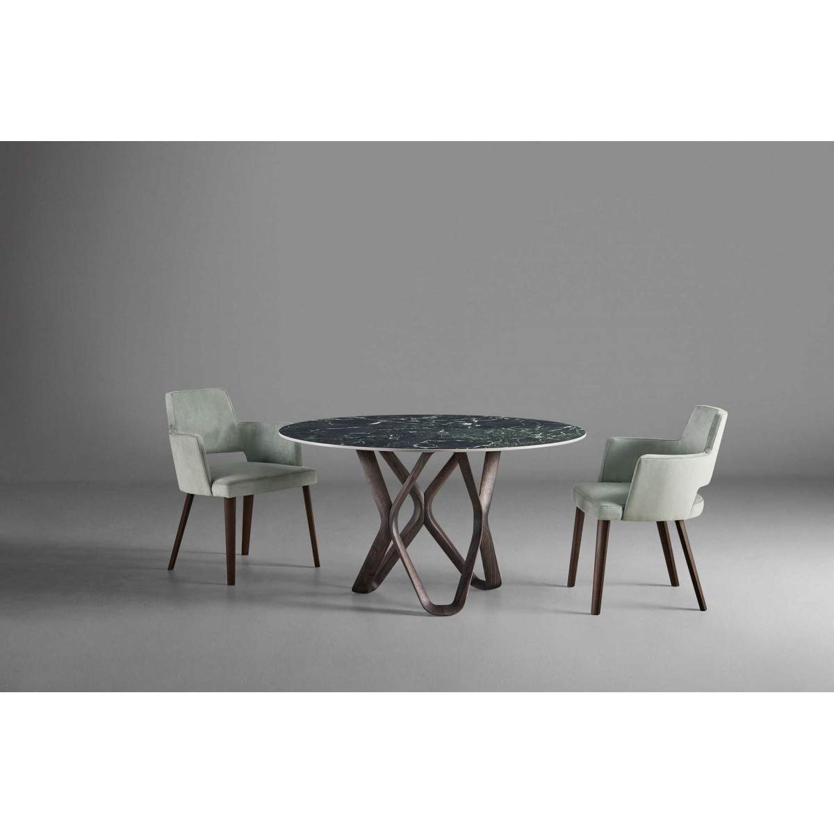 Il piano, disponibile in cristallo, gres porcellanato o marmo, offre una varietà di finiture pregiate che permettono di adattare il tavolo a qualsiasi stile d’arredo. Il cristallo trasparente o fumé regala leggerezza e luminosità agli spazi, mentre il gres porcellanato nei toni del grigio cemento o antracite dona un tocco contemporaneo e sofisticato. Per chi ama il lusso senza compromessi, le opzioni in marmo – dalle classiche tonalità Calacatta oro e Bianco statuario fino ai più ricercati Pulpis brown, Nero Marquinia e le preziose varianti extra come Patagonia, Orobico e Royal – trasformano il tavolo in un autentico elemento di design di prestigio.